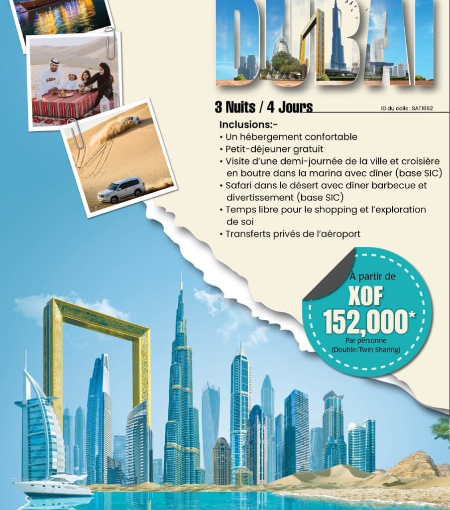 Dubaï, surnommée la « perle du Moyen-Orient », est aujourd’hui l’une des destinations touristiques les plus prisées au monde. Cette ville des Émirats Arabes Unis séduit par son mélange unique de modernité, de traditions et de luxe. Mais qu’est-ce qui fait réellement la force de Dubaï comme destination de voyage ? 1️⃣ Un carrefour international accessible 2️⃣ Des attractions modernes et futuristes 3️⃣ Une destination pour le shopping et le luxe 4️⃣ Une expérience culturelle et authentique 5️⃣ Une variété d’activités pour tous Choisir Dubaï comme destination de voyage, c’est s’offrir un séjour mêlant modernité, luxe et authenticité. Grâce à ses atouts touristiques, économiques et culturels, la ville se positionne comme un incontournable pour tous ceux qui souhaitent vivre une expérience unique. Chez SKYFORCE BENIN, nous vous accompagnons pour découvrir Dubaï dans les meilleures conditions, avec des offres adaptées à vos besoins et à votre budget. Pour plus d’information, suivez cet élément